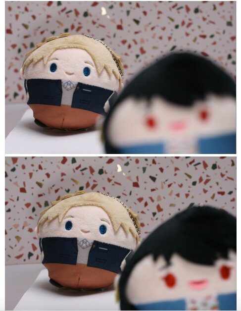 A blurred background can help really put focus on your plushie, but you can adjust aperture to lessen the blur if your plushies are a bit far from each other.